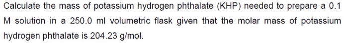 Repeat this procedure with a second sample of potassium hydrogen phthalate, following the above procedure 9. Calculate the ... Access Full Source